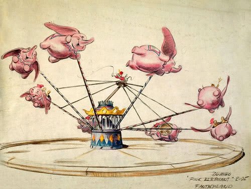A atração do Dumbo é uma viagem na história dos parques da Disney. O primeiro foi desenhado e inagurado na DisneyLand em Agosto de 1955.