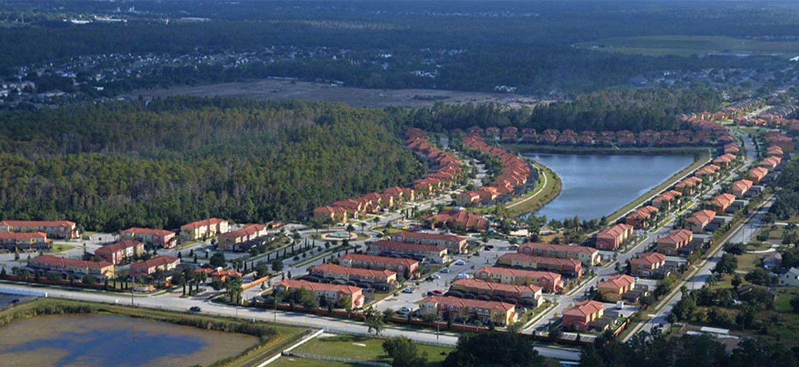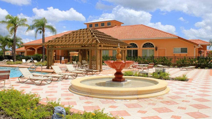 É um charmoso condomínio localizado em uma travessa da rodovia 192 atrás do Medieval Time e a apenas 5 milhas do portal de entrada do complexo Disney.