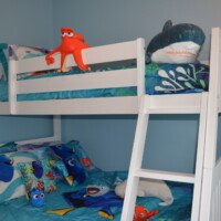 Duas das suítes têm decoração temática encantadora, perfeitas para encantar desde os pequenos até os mais crescidinhos. Os outros quartos são ideais para quem busca relaxar com muito conforto após um dia cheio de aventuras.